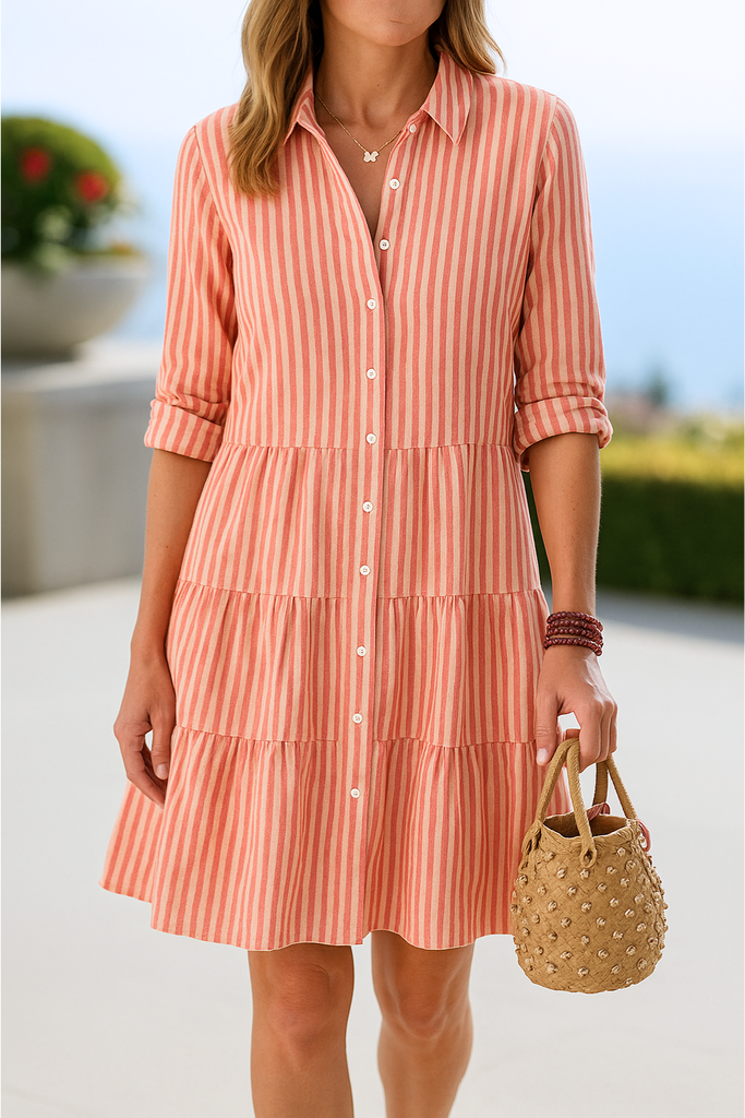 Esther™ | Elegante gestreepte overhemdjurk met lange mouwen