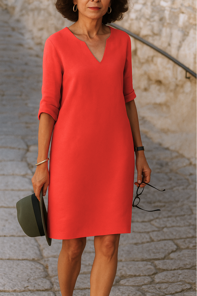 De verfijnde Ria™ jurk combineert elegantie met ultiem draagcomfort. Met een flatterende V-hals en een vloeiende pasvorm straalt deze jurk moeiteloze klasse uit. Perfect voor speciale gelegenheden of een stijlvolle dagelijkse look, Ria™ is een must-have voor elke garderobe.